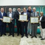 A homenagem, de iniciativa dos vereadores Tatá Teixeira e Camila Rosa e aprovada por todos os parlamentares da Casa, também celebrou o legado do ex-prefeito Norberto Teixeira, pai do vereador Tatá, reconhecido como visionário na consolidação do polo empresarial da cidade.